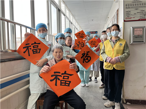 1月28日上午,城东养老院欢乐的歌声荡漾,院内一片欢腾喜庆。活动现场关志成院长与院内长者同乐,挥笔书写,一个个饱满圆润的“福”字跃然纸上。同时关院长亲切慰问院内长者,为长者送上美好的节日祝愿与暖心的关怀话语,与长者重温过年的习俗,一起分享春节的趣味往事。活动现场温情洋溢,长者纷纷表示院舍是一个幸福温馨的大家庭。